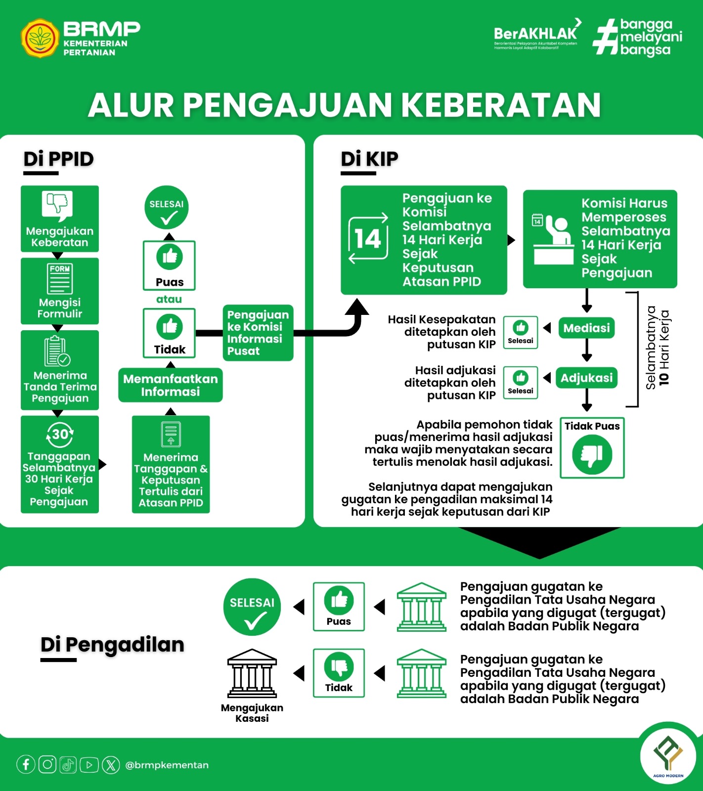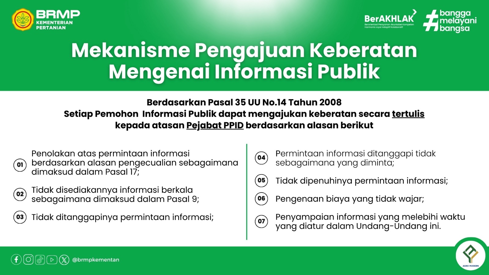 Setiap pemohon informasi publik dapat mengajukan keberatan secara tertulis kepada atasan Pejabat Pengelola Informasi dan Dokumentasi dengan alasan sebagaimana ditetapkan dalam pasal 35 Undang-Undang Nomor 14 Tahun 2008. Keberatan diajukan oleh Pemohon Informasi Publik dalam jangka waktu paling lambat 30 (tiga puluh) hari kerja setelah yang bersangkutan menemukan alasan keberatan.