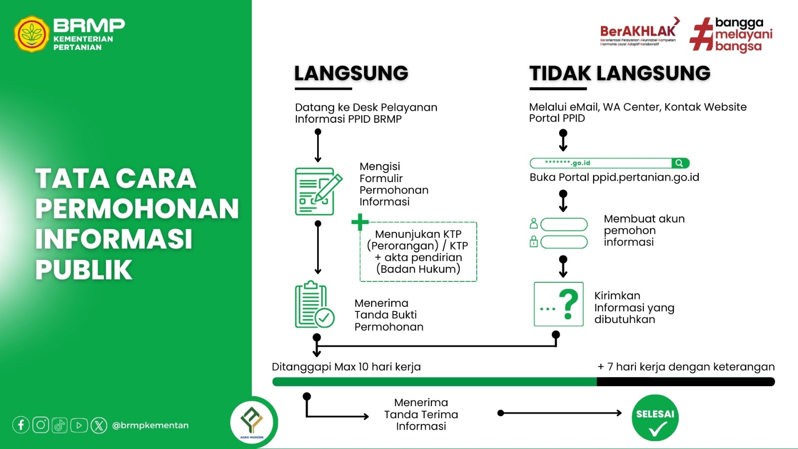 Prosedur Pelayanan Informasi Publik lingkup Badan Perakitan dan Modernisasi Pertanian disusun berdasarkan Peraturan Menteri Pertanian Nomor 32/Permentan/OT.140/5/2011 tentang Pengelolaan dan Pelayanan Informasi Publik di Lingkungan Kementerian Pertanian dan Peraturan Komisi Informasi Republik Indonesia Nomor 1 Tahun 2021 tentang Standar Layanan Informasi Publik.